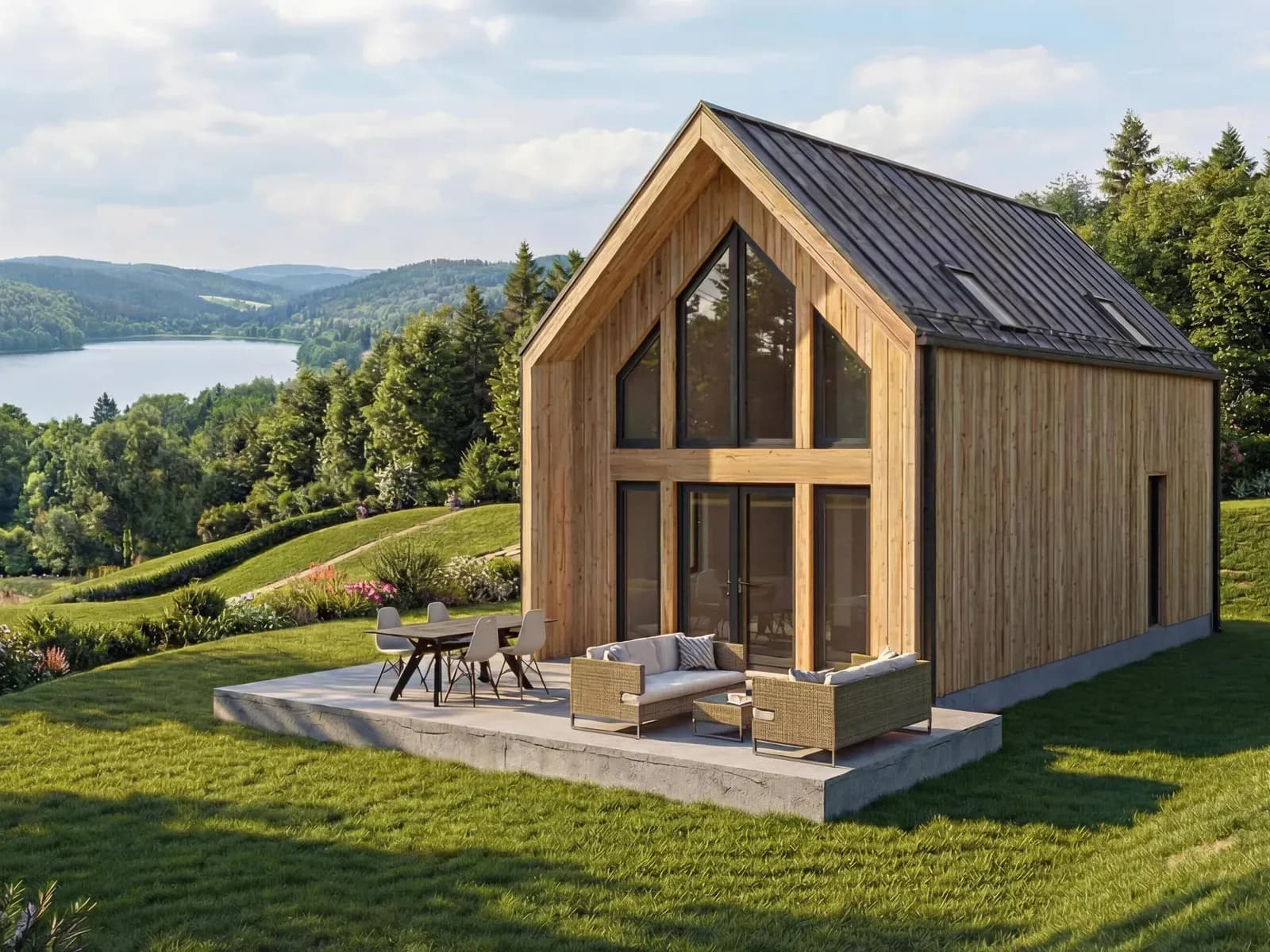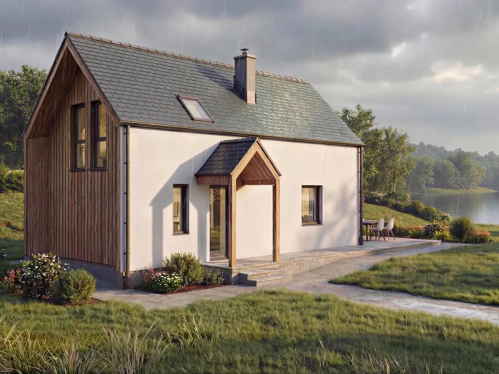 Dom jednorodzinnySamodzielny, wolnostojący budynek w technologii szkieletowej na rzucie prostokąta, przekryty dachem dwuspadowym.